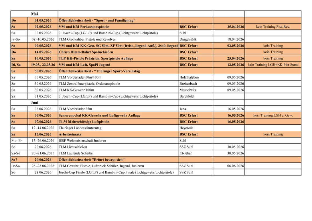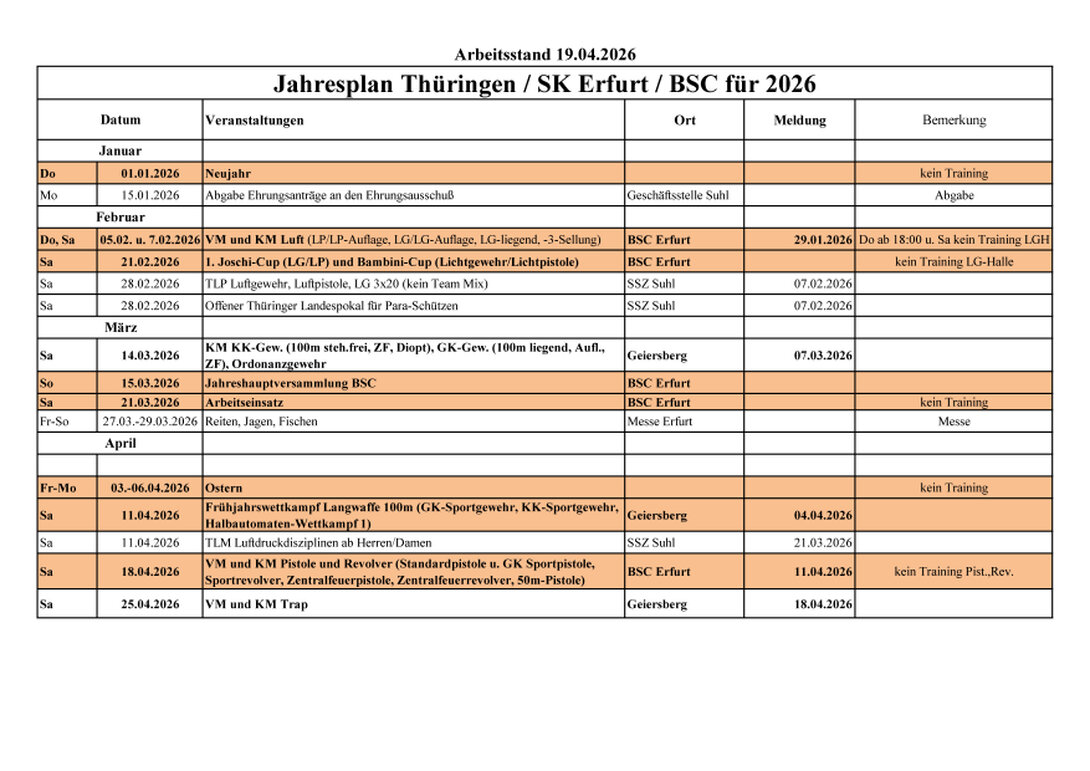 Hier finden Sie den Sportplan des SK Erfurt für 2026...